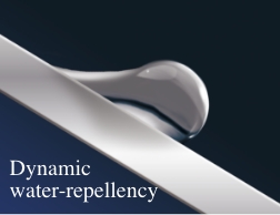 Simply applying the coating agent to the surface does not achieve the dynamic water-repellent effect. DYNAMIX is made possible by carefully selecting raw materials, optimizing the composition ratio, and forming a more dense and uniform coating, with all elements balanced to perfection.